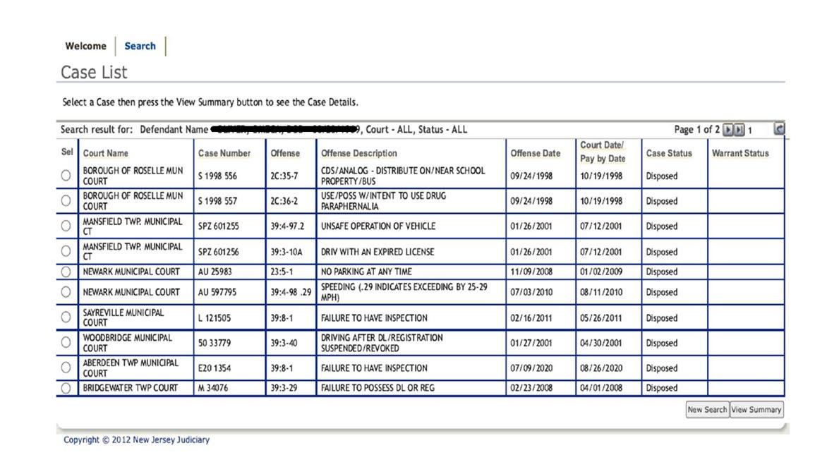 1. Visit Superior Court Case Search (Promis Gavel); note: i. Title 2C: is the New Jersey code for criminal matters ii. Title 39: Motor vehicles violations and so not relevant for expungement purposes