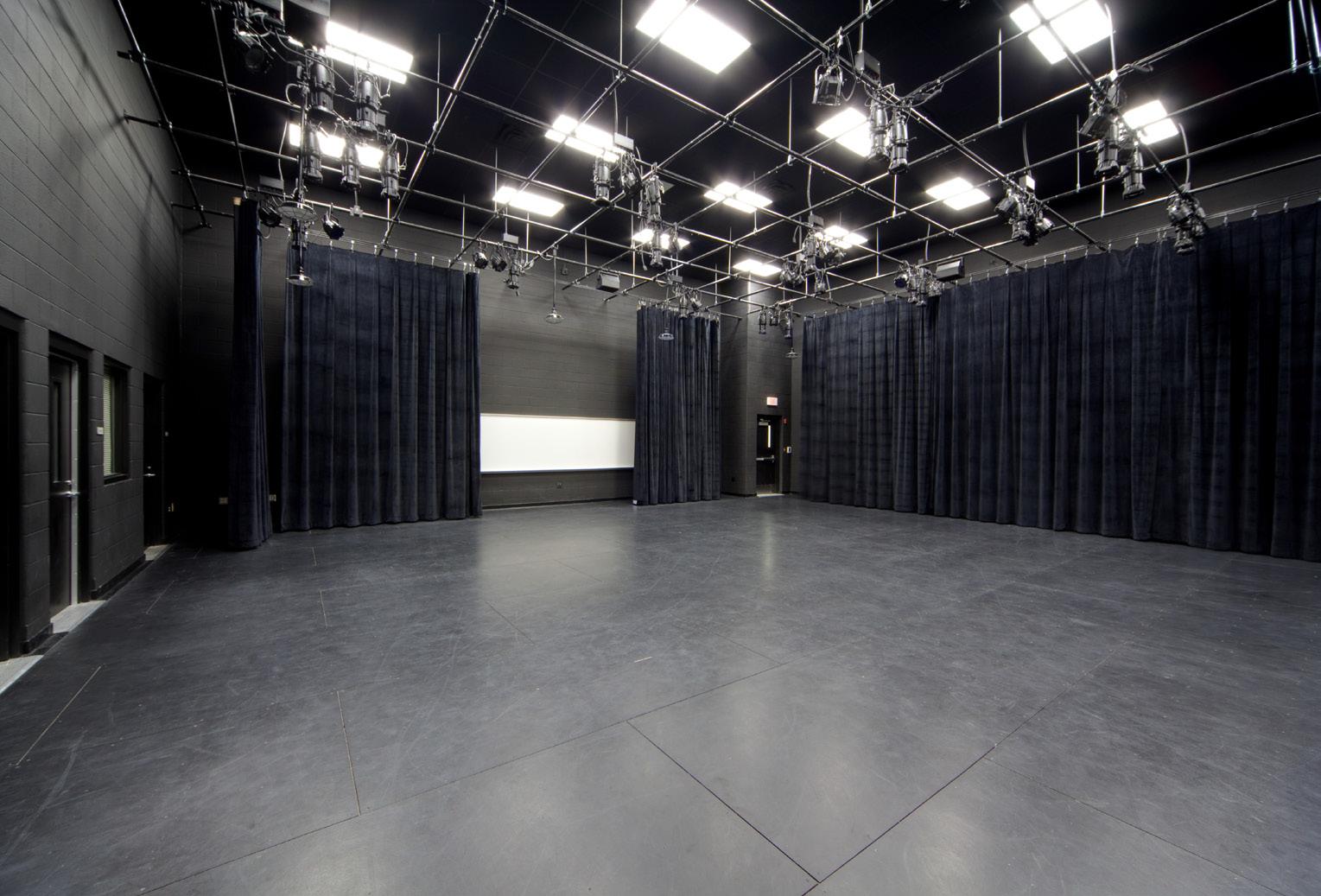 The auditorium, assembly rooms, black box theater, and little theater all have prefunction spaces to anticipate performance needs. The scene shop, prop storage, and stage of the concert hall are provided a service dock, allowing for travel ease. Visual Art studios are located on the first level with access to a courtyard for sculpture work, accessible by garage doors. Digital Arts work studios are also provided, and kiln rooms and ample storage support the programs.