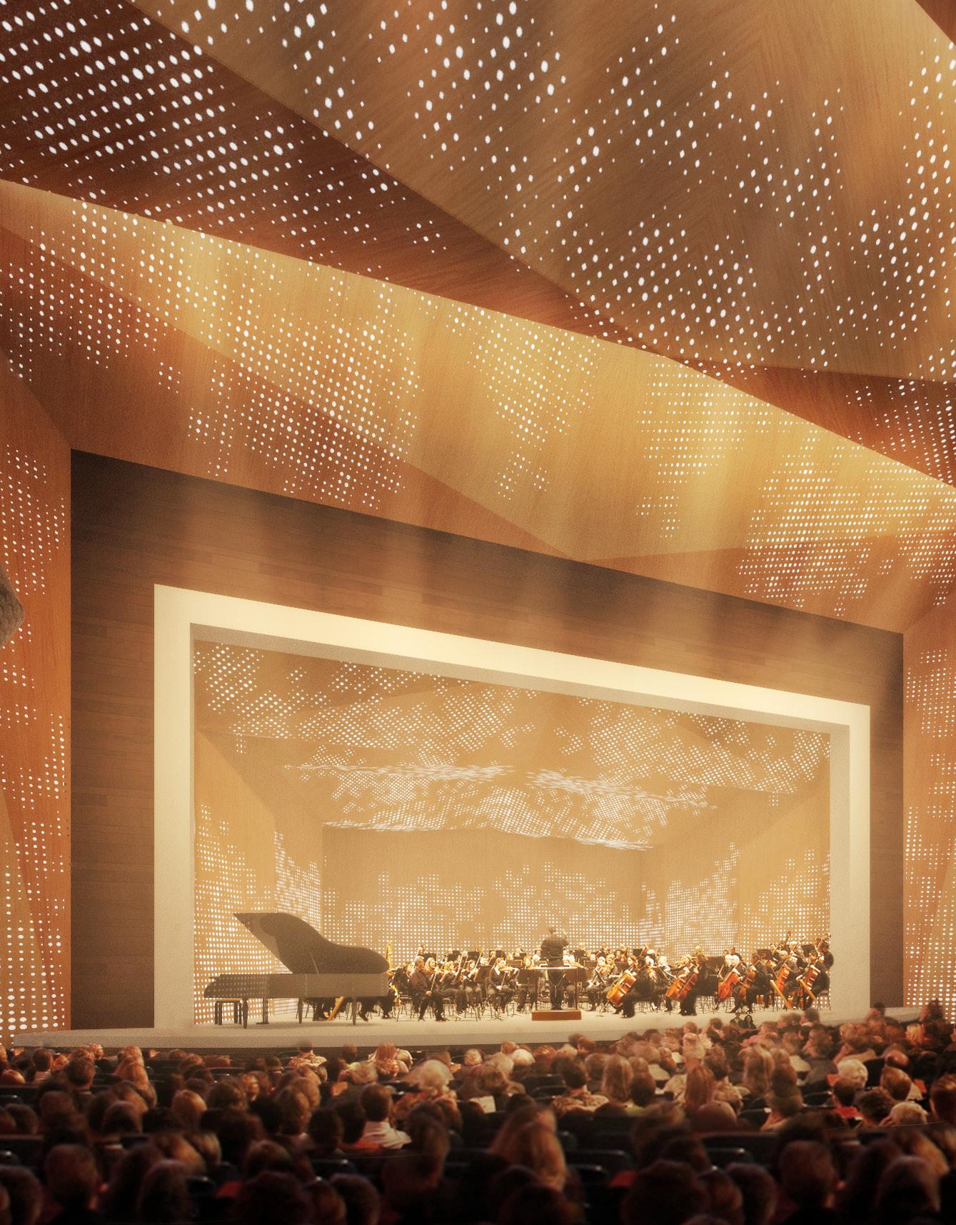 This particular performance hall, Rothwell Recital Hall, was programmed as a multi-use performance space – perhaps to host a lecture, choral rehearsal, or a recital, to name a few. With that in mind, the design of the space had to respond.