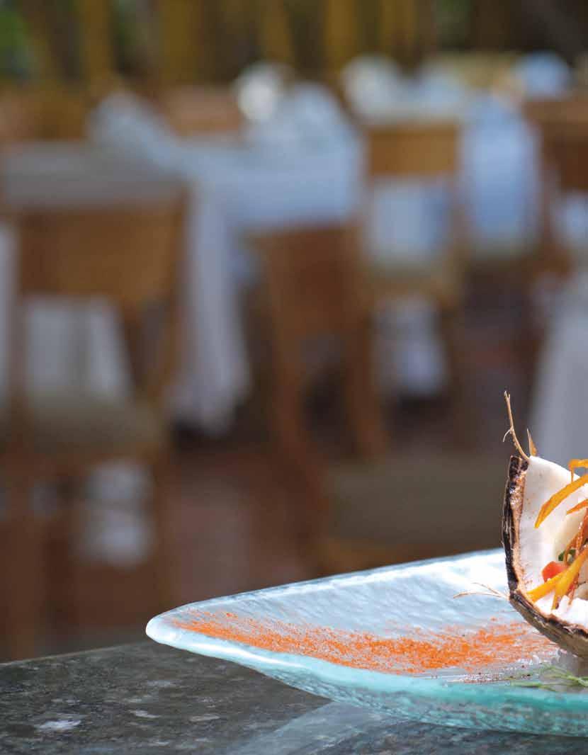 This exceptionally pretty restaurant celebrates the vivacious spirit of Mexico’s most authentic cuisine in six different ambiances, including an ocean-view terrace, garden sanctuary and airconditioned dining room. Everything is made from scratch, including tortillas and moles , or sauces, containing 30-plus ingredients each— peanut from Chiapas, black from Oaxaca, pink from Guerrero and Poblano from Puebla— served over chicken, the traditional way. Complimentary jicama and guacamole tacos accompany drinks, margaritas appearing with individual tequila bottles. The tortilla soup is wonderful, as is the calamari in a buttery garlic sauce, the Si Senor steak and every other dish we tried. Un restaurante excepcionalmente bello que celebra el vivaz espíritu de la cocina más auténtica de México en seis ambiente diferentes, incluyendo una terraza con vista al mar, un jardín que parece un santuario, y un salón con aire acondicionado. Todo se prepara aquí, incluyendo las tortillas y los moles con más de 30 ingredientes cada uno – el de cacahuate de Chiapas, el negro de Oaxaca, el rosa de Guerrero y el poblano de Puebla, servidos sobre pollo, de la manera tradicional. Los tacos de jícama y guacamole acompañan a las bebi-