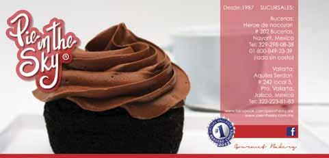 Numerously awarded “Best Bakery” by VirtualVallarta.com’s Reader’s Choice, Pie in the Sky has been a tried and soughtafter source of pies, cakes, cookies and tarts since the late 1980s. Try their worldfamous Beso, a chocolate-rich brownie with a melted fudge center. Also serving coffee, espresso, lattés and pre-baked chicken pies, gourmet pizzas, empanadas, scones and ice cream, not to mention one-of-a-kind wedding cakes that “taste as good as they look.” Delivery service.