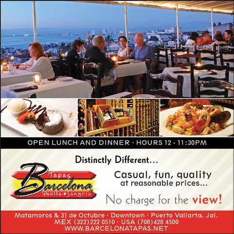 Open daily for lunch and dinner, this Spanish specialty restaurant has been delighting visitors and locals since New Year’s Eve 2000. From the get-go, chef-owner William Carballo has maintained his commitment to satisfying customers one guest at a time, as shown by the high returnvisit rate his eatery has enjoyed since its inception. Multiple levels allow for varied ambiances and dining experiences every time you visit. Plus, its nearness to the Malecon and Parque Hidalgo garage makes Barcelona Tapas an ideal starting or ending point for an enjoyable day exploring Puerto Vallarta’s El Centro neighborhood. Abierto diariamente para el almuerzo y la cena, este restaurante de especialidades españolas ha deleitado a visitantes y locales desde finales del 2000. Desde entonces, el chef propietario William Carballo ha mantenido su compromiso de satisfacer a sus clientes uno por uno, lo cual explica la gran cantidad de comensales que desde entonces han regresado repetidamente a Barcelona Tapas. Cuenta con varios niveles, cada uno con su propio estilo y ambiente, lo cual ofrece una experiencia diferente cada vez. Además se encuentra cerca del Malecón y el estacionamiento en Parque Hidalgo, lo que lo hace un destino ideal para complementar un paseo por El Centro de Puerto Vallarta.