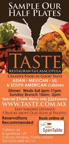 TasTe resTauranT aT casa cupula c allejón de la igualdad 129 • a M apas t el. (322) 223-2484