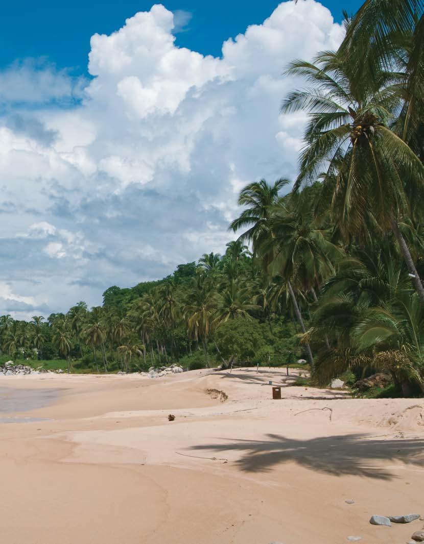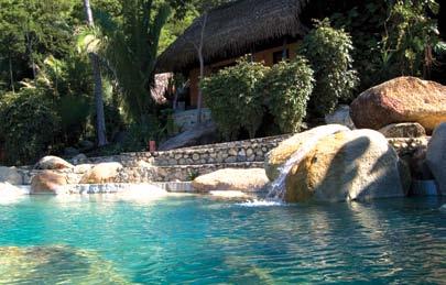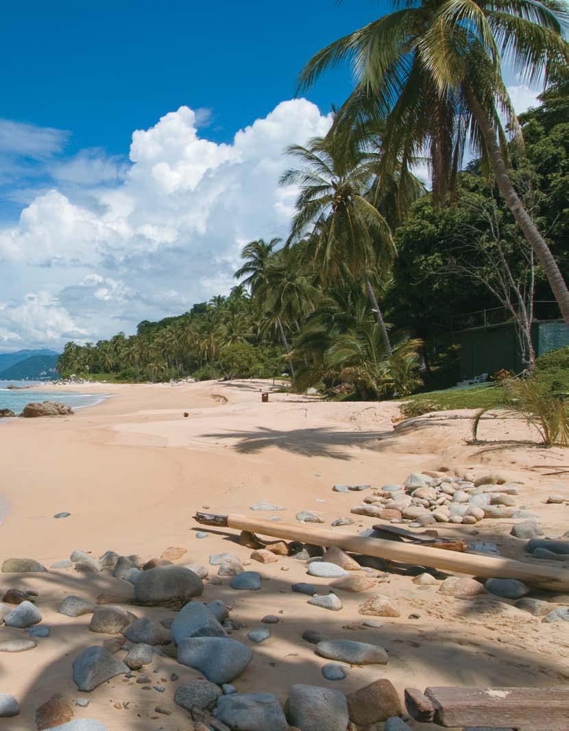 This has not prevented several indigenous fishing communities from blossoming or those with a well-rooted inner Robinson Crusoe from exploring this natural treasure. For example, close to the southernmost point of the bay, the town of Yelapa earned its well-deserved reputation as a beatnik artistic retreat way before Puerto Vallarta had a paved, fourlane access road. And farther up along the bay, Puerto Vallarta artist and resident Cathy Von Rohr chose to give up her successful New York track as an automobile designer and settled at Majahuitas, a secluded beach, in 1967, remaining there for three decades. “I could look out from Majahuitas at night, and at that time there were no lights around the bay, so whatever I saw around me was the same as it was when the Earth was made,” she shared with us during an interview last year.