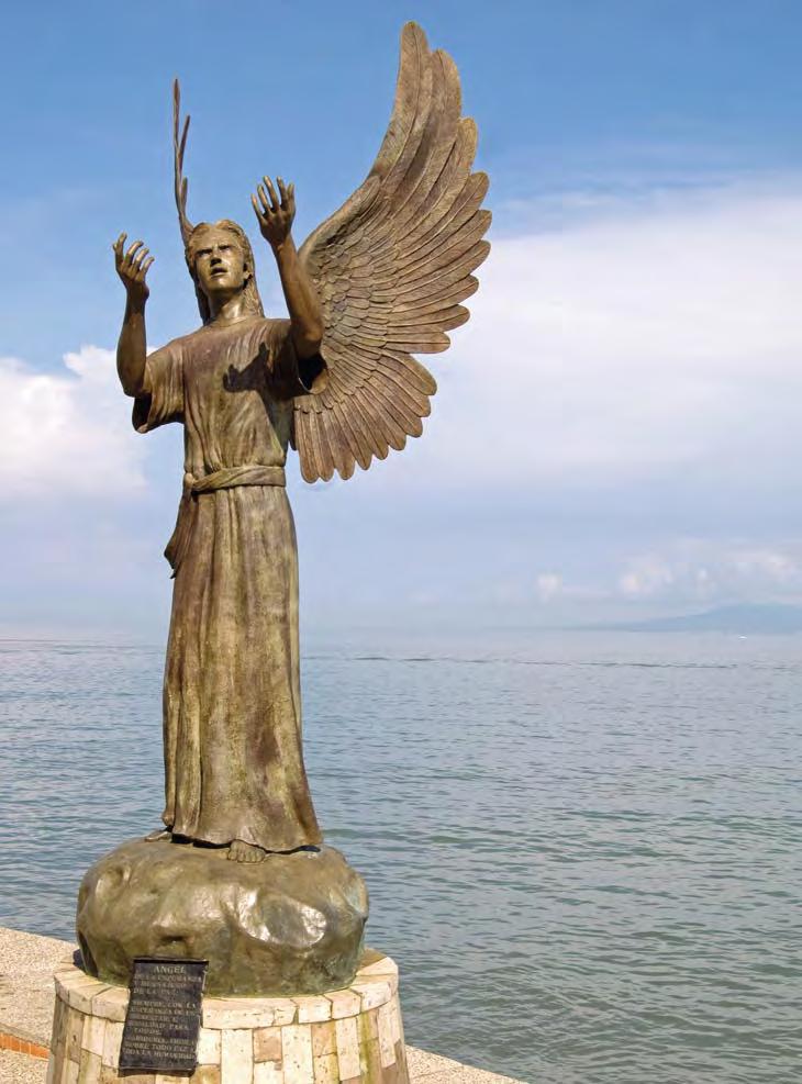 A bronze angel replaces the cantera f igure lost in Hurricane Kenna