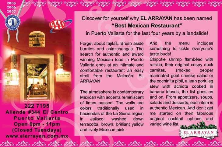 Olas Altas 380 Puerto Vallarta, Jalisco 48380 Tel: 222-1583 Fax: 222-2418 losarcos@pvnet.com.mx