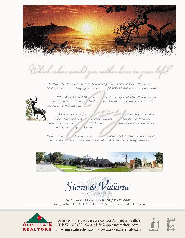 Puerto Vallarta Lifestyles, Primavera-Verano, Mayo 1 del 2004. Revista trimestral producida independientemente pero con la colaboración de empresas en Bahía de Banderas. Producciones VIVA no asume responsabilidad alguna por información y/o fotografías proporcionadas por los anunciantes. Dicha información se asume como confiable de acuerdo a las fuentes de donde se obtiene. Se prohibe la reproducción total o parcial de esta revista sin el permiso expreso de Producciones VIVA, S.A. de C.V. Puerto Vallarta Lifestyles is a quarterly magazine, produced independently, but in cooperation with the business communities of Banderas Bay. Producciones VIVA assumes no responsibility or liability for the information and photos presented in this magazine for its advertisers. All information is deemed reliable from the sources in which it was taken. It is prohibited to reproduce in total or part, any portion of this magazine without the expressed permission of Producciones VIVA. Puerto Vallarta Lifestyles is an affiliate of A.M.P.I. (Mexican Real Estate Association). For subscriptions outside of Mexico, please send a check for $30.00 USD to Vallarta Lifestyles, 827 Union Pacific #78-299, Laredo, TX 78045. Or subscribe online at www.virtualvallarta.com.