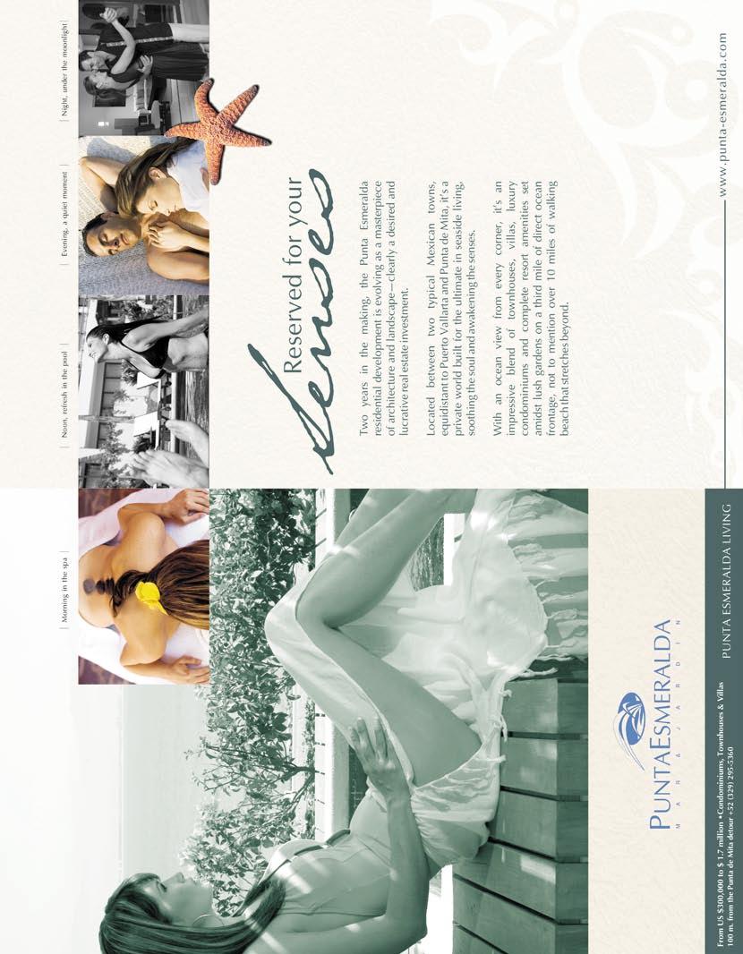 Puerto Vallarta Lifestyles, Verano-Otoño, Agosto 1 del 2006. Revista trimestral producida independientemente pero con la colaboración de empresas en Bahía de Banderas. Producciones Viva no asume responsabilidad alguna por información y/o fotografías proporcionadas por los anunciantes. Dicha información se asume como confiable de acuerdo a las fuentes de donde se obtiene. Se prohibe la reproducción total o parcial de esta revista sin el permiso expreso de Producciones Viva, S.A. de C.V. Puerto Vallarta Lifestyles is a quarterly magazine, produced independently, but in cooperation with the business communities of Banderas Bay. Producciones Viva assumes no responsibility or liability for the information and photos presented in this magazine for its advertisers. All information is deemed reliable from the sources in which it was taken. It is prohibited to reproduce in total or part, any portion of this magazine without the expressed permission of Producciones Viva. Puerto Vallarta Lifestyles is an affiliate of A.M.P.I. (Mexican Real Estate Association). For subscriptions in US or Canada only, please send a check for $38.00 USD to: MexMags, 827 Union Pacific #78-299, Laredo, TX 78045. Or subscribe online at www.virtualvallarta.com.