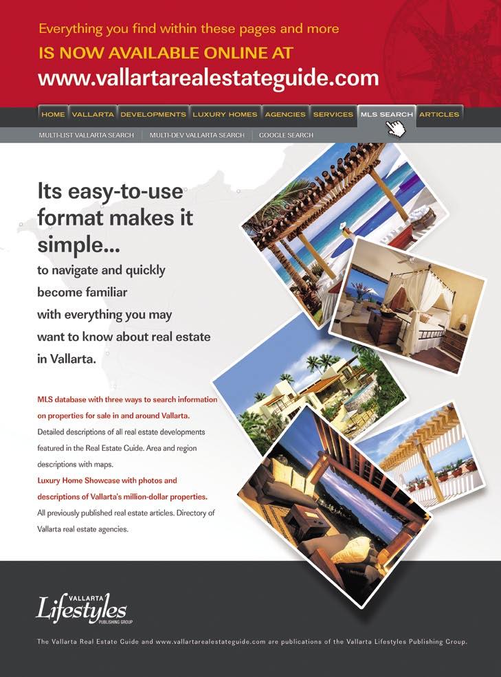 And what is that? Digital publication are becoming more and more popular, especially for trade or international publications such as ours. They are inexpensive to produce and easy to receive via the Internet. What you see looks like a magazine spread out on a table, and as you click through the pages, they fold over just like a traditional publication. There are quick links to all major sections so its easy to browse. And what we really like is that because it is digital, we can add multi-media such as slideshows, voice narration and video to both editorial and advertisements, creating a "dynamic" version of Vallarta Lifestyles. We will begin by offering free subscriptions for a limited period of time, so sign up now at www. virtualvallarta.com.