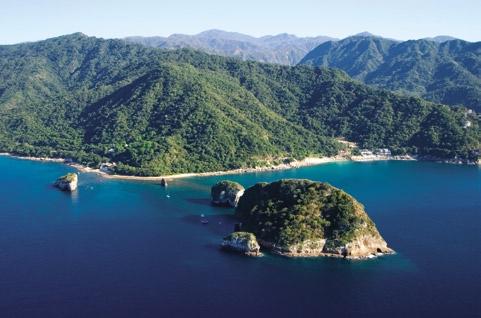 • Banderas Bay’s two prominent headlands are Punta de Mita to the north and Cabo Corrientes to the south. Las Tres Marietas Islands at the western end of the bay welcome visitors arriving by water.