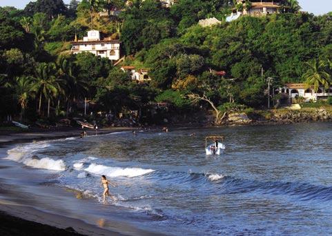 Conversely, the North Shore of the bay features low rolling hills and dry weather, with afternoon breezes reaching 20 knots or more. The sea bottom is characterized by gentle, sandy slopes and shallow anchorages in 15 to 30 feet of water, with good holding. Favorite anchorages include El Anclote at Punta de Mita and the area outside the harbor at La Cruz de Huanacaxtle.