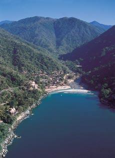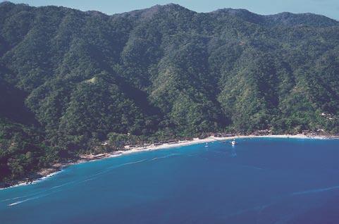 The spectacular South Shore of Banderas Bay is characterized by the steep jungle-covered Sierra Madre Mountains. The mountains continue their plunge into the depths of the bay, creating deep anchorages that require boats to anchor very close to shore, many times with bow and stern anchors set to provide adequate holding. Favorite anchorages on this side of the bay include Las Animas and Yelapa.