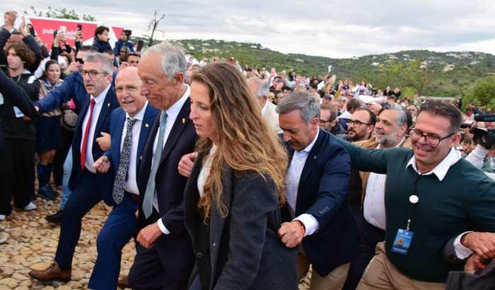 Ao lado do executivo municipal, da Conselheira de Estado, Lídia Jorge, e da Ministra do Ambiente e Energia, Maria da Graça Carvalho, Marcelo Rebelo de Sousa desceu a Praça da República até à Igreja de S. Francisco. Sempre seguido de perto