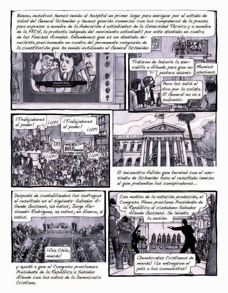 La presente edición corresponde al primer tomo, de dos, de la novela gráfica El Golpe. Esta primera parte se titula El Pueblo y abarca desde el año 1970 hasta 1973. El segundo tomo abarcará desde 1973 hasta el plebiscito de 1988 y el retorno a la democracia. Este proyecto se inició el verano del 2013, realizando entrevistas a personas que vivieron su juventud en aquella época. Estamos infinitamente agradecidos por el testimonio y generosidad de Nubia Becker, Osvaldo Torres, Cristián Galaz y Andrea Ugalde. A ellos y a los jóvenes chilenos va dedicado este libro.