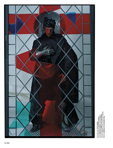 CAPE AND TUNIC RICK OWENS COAT (UNDERNEATH) BOTTEGA VENETA PANTS EMPORIO ARMANI SLIPPER GUCCI HAT AND ARMOR ANGELS ThE COSTUMIERS GAUNTLET BAPTY SOCKS (THROUGHOUT) FALKE BROOCH GIVENChY BY RICCARDO TISCI