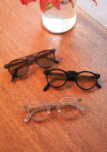 フランスのブランド「ジャン・フィリップ・ジョ リー」と鯖江の気鋭「フィルトン」がデザイ ンし制作。クラシカルなクラウンパントを、肉 厚な生地と多面的なカッティングで大胆にア レンジしたコラボモデル。フィルトン独自の ボタンモチーフのチタン パッドなど、両者の持ち味 が発揮されている。7万 4800円 /Instagram: @filton_officiel_