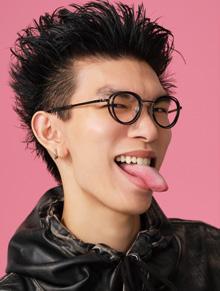 友達と待ち合わせて、ライ ブハウスに行くところだっ たニッキーさん。「見ての通 り私はピンクが好きなの で、メガネも当然ピンク。こ れはオーストラリアにある 大手メガネ屋さんで買いま した。日本人もこれくらい 派手にいきましょう!」