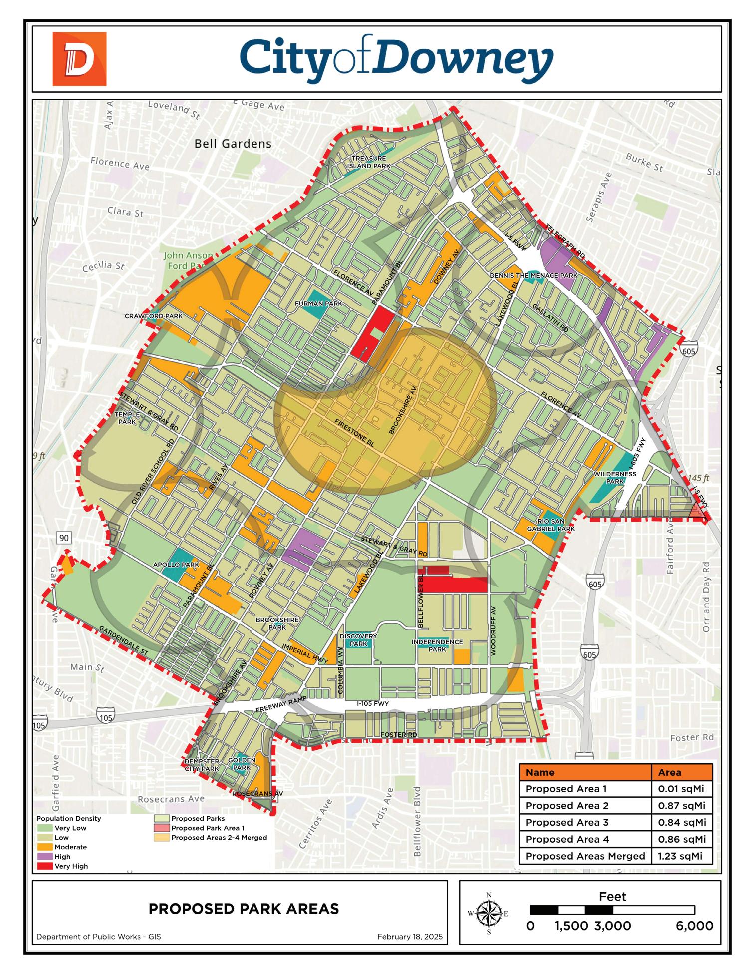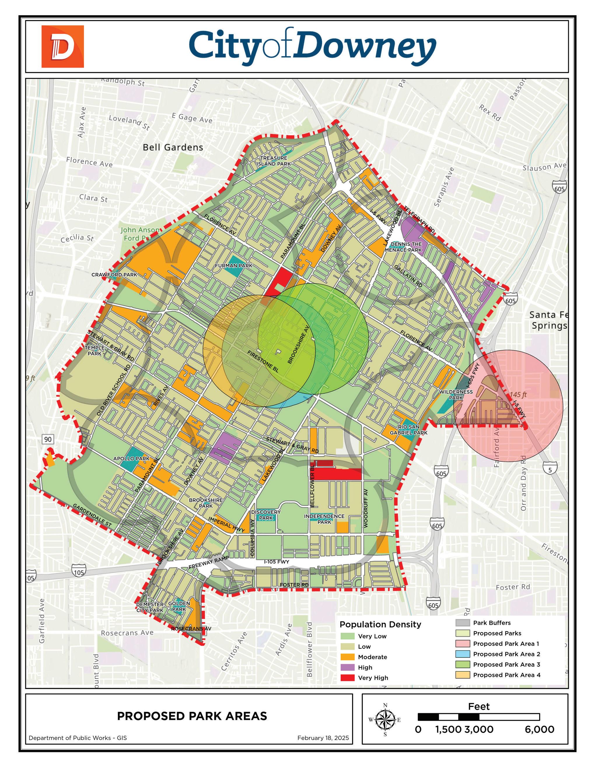 Existing land use throughout the City of Downey, only 4% of geographic area is undeveloped leaving scant choices for parks