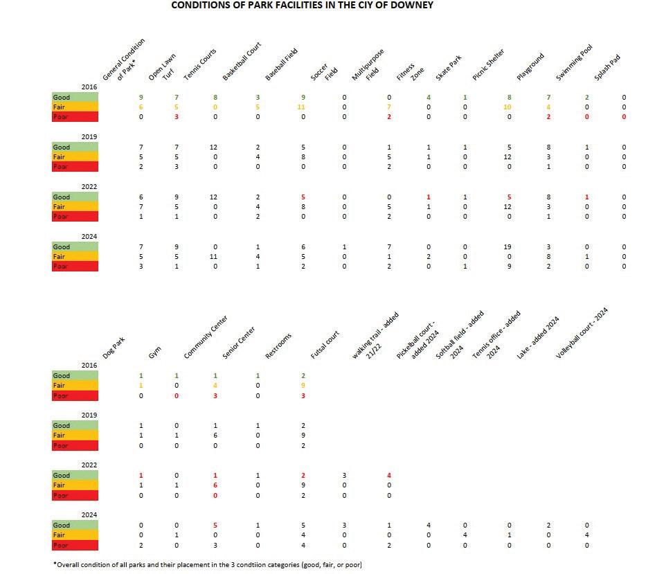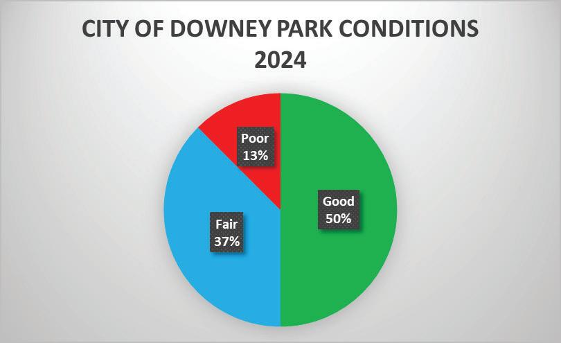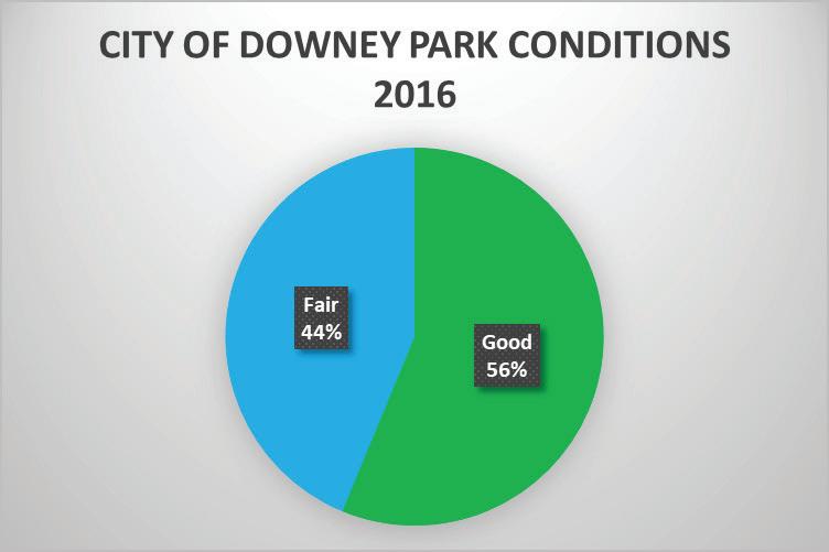 44% of Downey’s parks were rated as poor/fair at the time of the most recent PNA reporting period. This figure can aid in directing future funding initiatives in the City’s most needed areas.