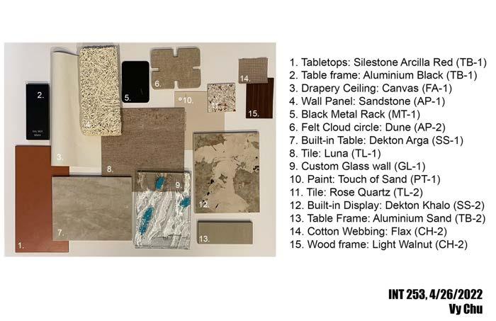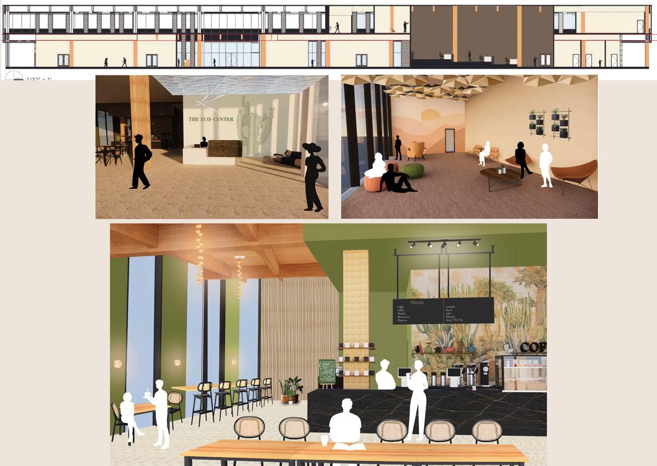a solo project, commercial design part of the ECO Center showcase the beautiful sand dunes of the Native American Preservation and the culture that grows within through material palette practice