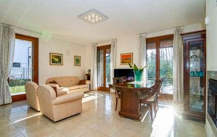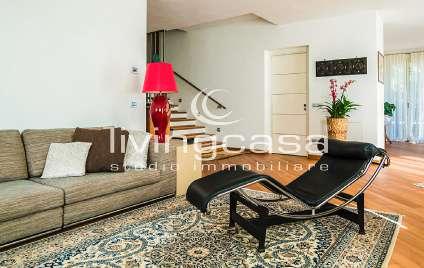 La pavimentazione in teak, gli infissi in legno/ alluminio, l'impianto d'allarme e l'impianto di aspirazione centralizzata sono solo alcune delle molte finiture di questa casa.