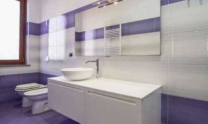 mobile bagno con specchiera e lavatrice ; in camera, comò, armadio e comodini .