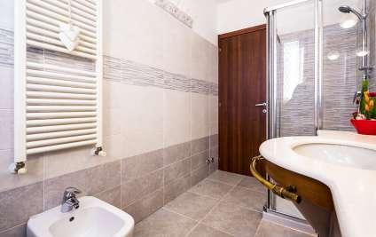 Salendo dalla scala interna del soggiorno al piano primo di 28 mq , troviamo la camera matrimoniale e il suo bagno privato con doccia.