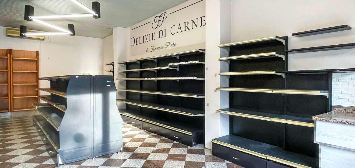 Il locale è completamente attrezzato, con scaffali, un banco esposizione di 11 m, scalino refrigerato per salumi, due affettatrici e due celle frigorifere. Nel retro bottega si trova lo spazio per la lavorazione delle carni con tavolo in acciaio inox e teflon, il locale per lo stoccaggio della merce, il locale cucina da attrezzare e un bagno.