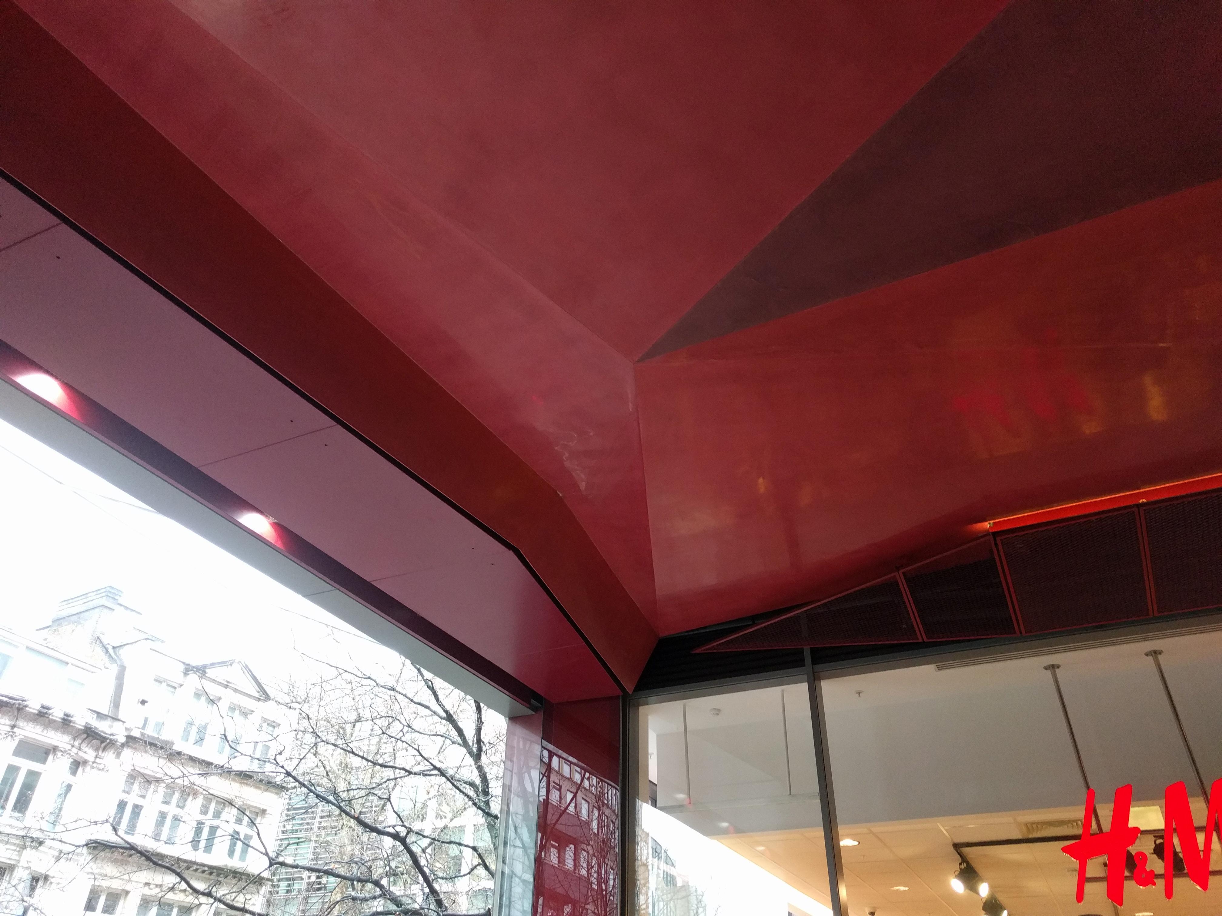 Ceiling panel, Dulles Airport Chipotle / Architect Unknown. Corridor section, 88 Wood St. / RSHP 2001.