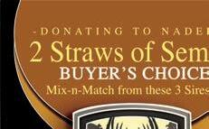 2 Straws of Custom Made. He is 671” and 48” wide, and GEBV 0.0323. He produces huge and wide deer. SS genotype, 9 years of age.