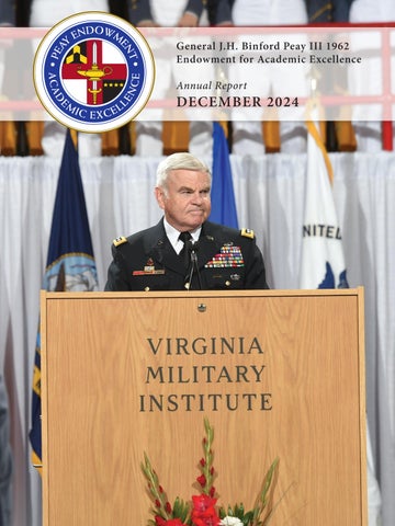 It has been 7 years since the VMI Board of Visitors passed the resolution authorizing the General J.H. Binford Peay III ’62 Endowment for Academic Excellence. Since then, the combined efforts of the VMI Foundation, our esteemed cabinet members, and the generosity of you now reading this annual report have combined to secure the Peay Endowment as a defining feature of academic excellence at VMI. As always, on behalf of VMI and cabinet members of the Peay Endowment, we thank you for your commitment and continuing respect for General Peay’s immeasurable contributions to VMI.