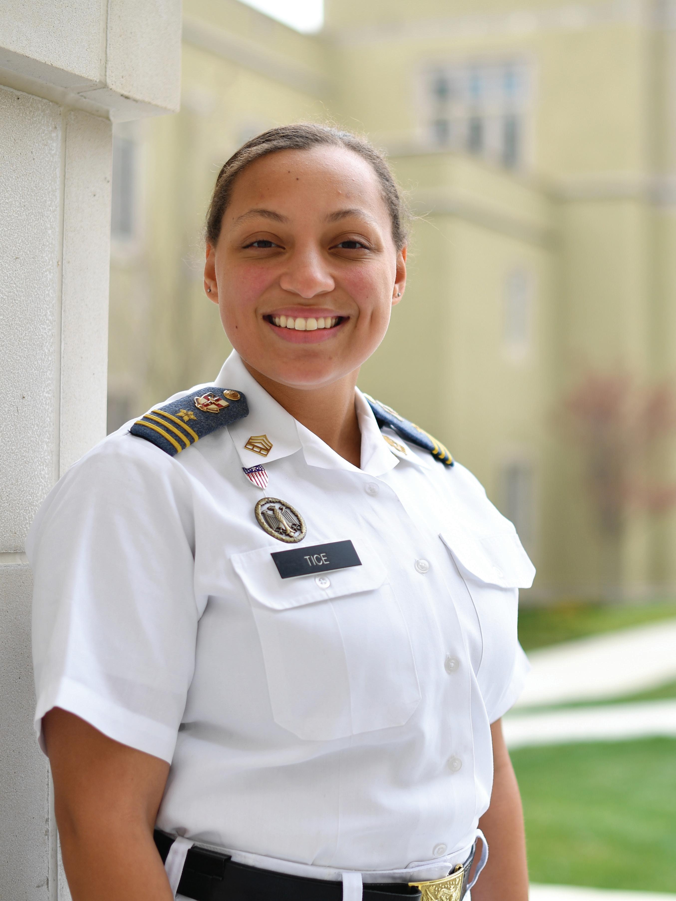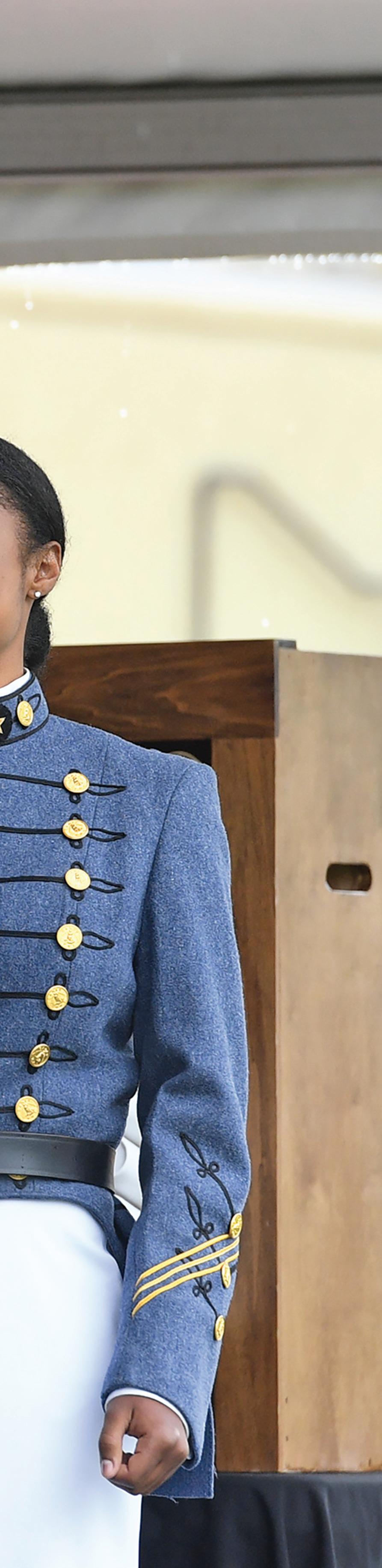 Opposite: Annika Tice ’19 was the first female cadet elected to the Honor Court –a high peer honor. Tice was also awarded a spot in the Fulbright U.S. Student Program during her 1st Class year at VMI. Tice is one of six VMI alumni to be selected for the Fulbright U.S. Student Program. Tice lived and worked for one year in the Ivory Coast creating lesson plans and assisting with U.S. embassysponsored after-school programs at the American Culture Center.