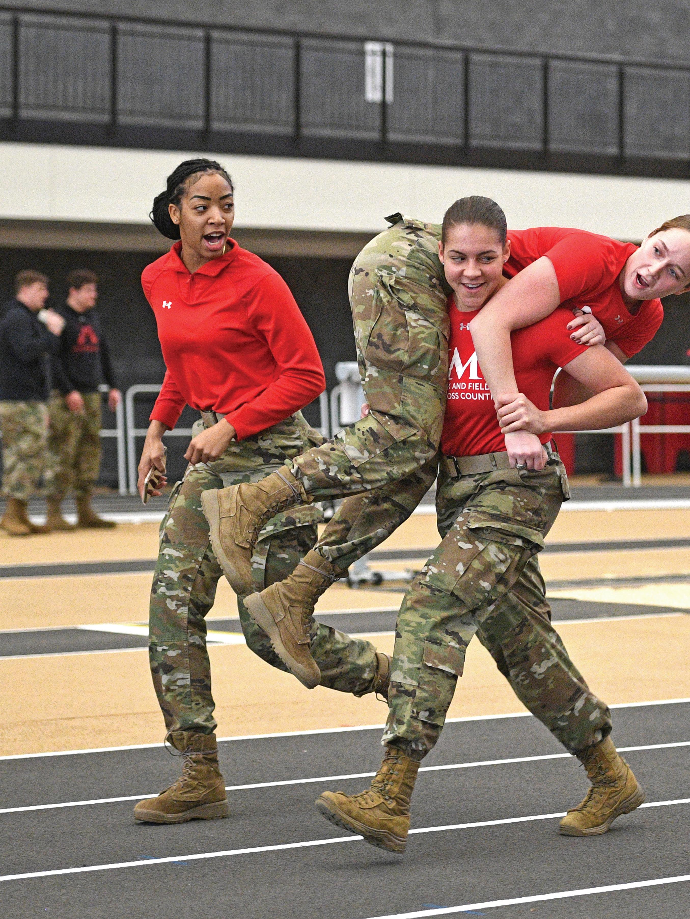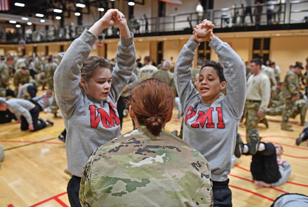 When it comes to club sports, VMI women have competed at nationals in triathlon, and at the national and world level in powerlifting. They’ve run in the Boston Marathon. They field teams in volleyball and rugby and compete with the men in pistol, martial arts, and trap and skeet.
