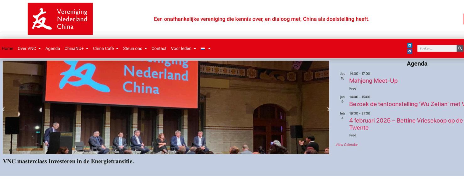 De VNC blijft haar doelstelling – kennis over China te verspreiden en netwerken te verbinden –uitdragen en bracht met deze masterclass, vernieuwende inzichten over de aanpassingen die nodig zijn, hoe China bijdraagt en hoe beleggers daar van kunnen profiteren.