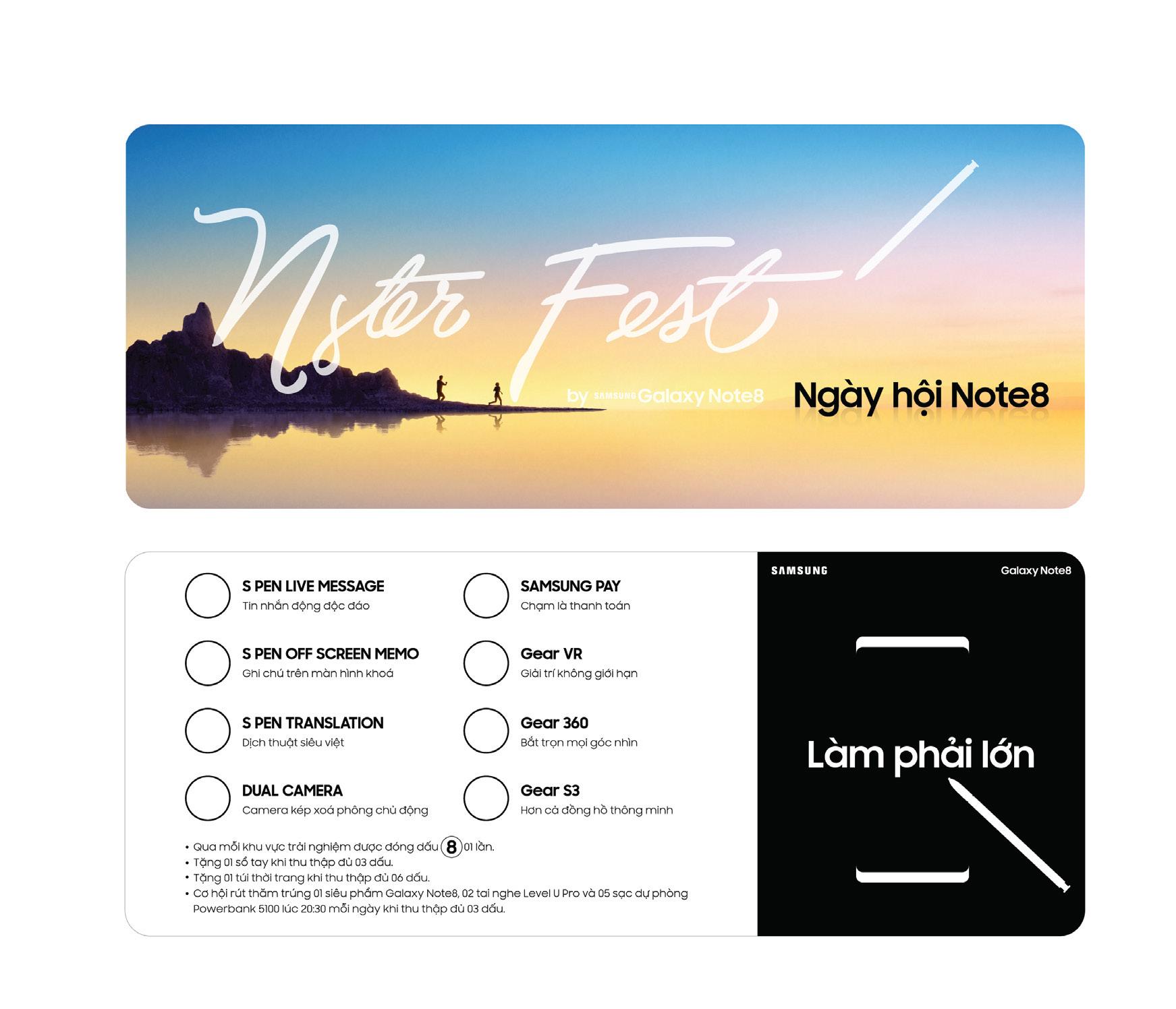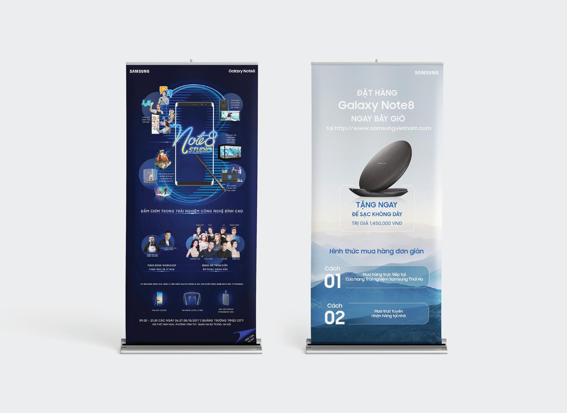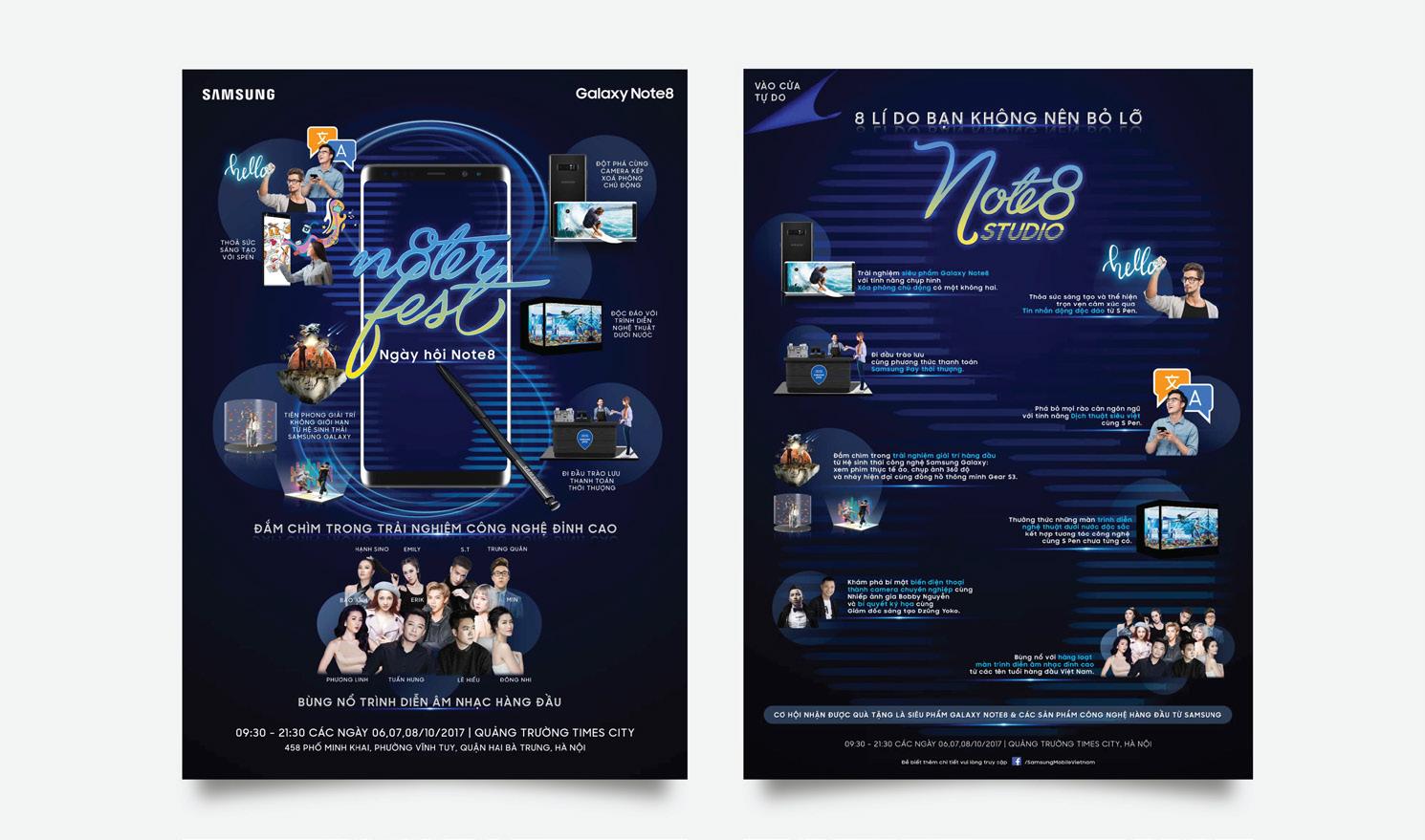 NOTE8 STUDIO is a music & activation show for the launching & experience Samsung Galaxy Note8 organized in October, 2017 b Samsung Vietnam. I was responsible for all 2D Graphics & POSM of the project. Below are some typical categories.