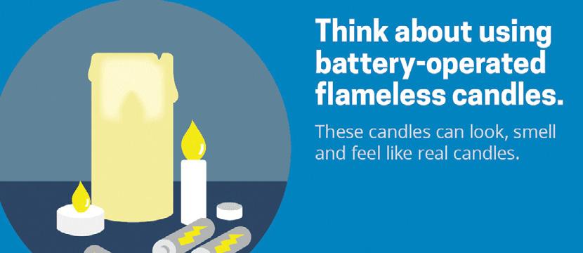 fires occur in December, January, and February. Please ensure you keep anything that can burn at least three feet away from all fireplaces, furnaces, space-heaters, or radiators. Furthermore, please make certain you have working smoke and carbon monoxide alarms inside your home and that you test them monthly. Consider choosing holiday decorations that are flame resistant or flame retardant and replace any holiday lights containing broken or frayed cords. Lastly, please keep Christmas trees away from heat sources including fireplaces, radiators, candles, and heat vents and keep tree bases filled with water in order to prevent trees from drying out.