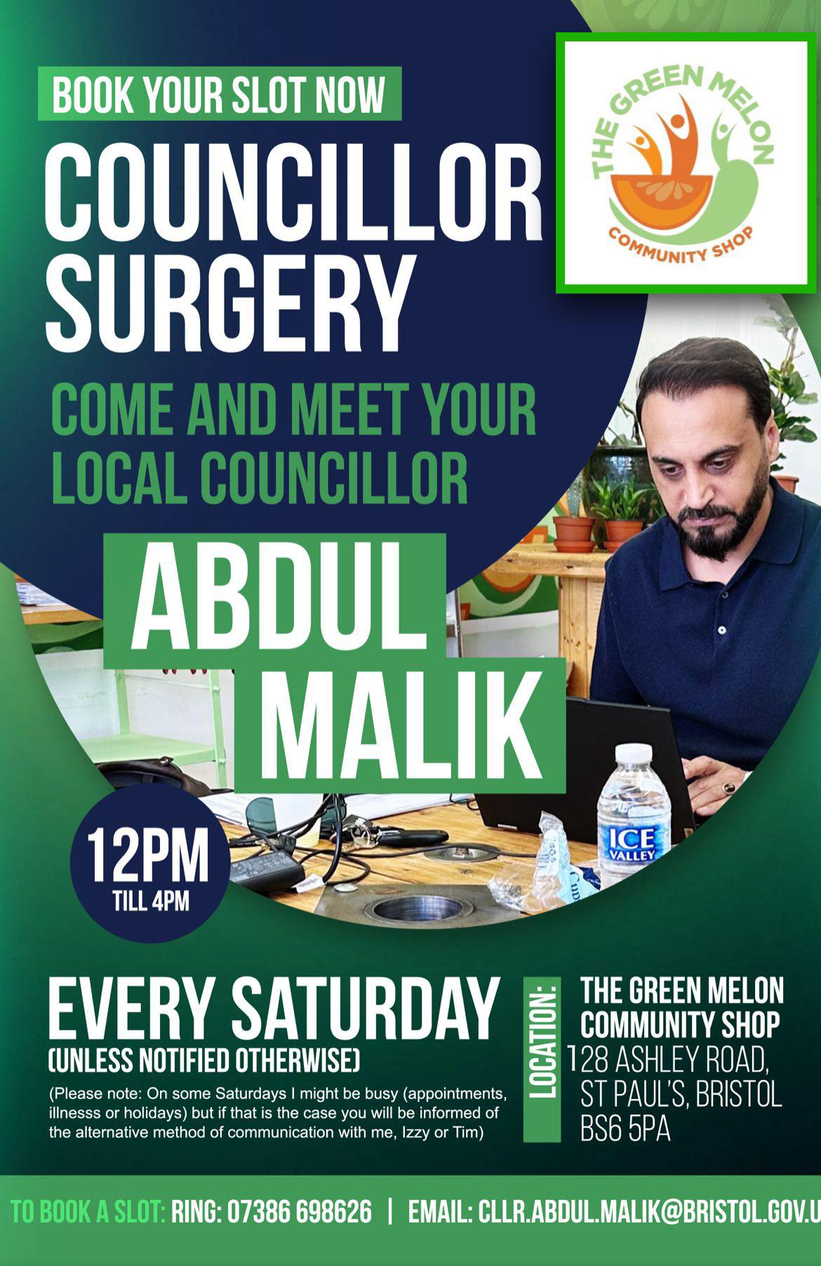 Councillor Surgery: Join us for our regular Councillor Surgery every Saturday from 1-4pm (unless otherwise stated). This is a great opportunity to discuss any concerns, share ideas, or simply get to know us better.
