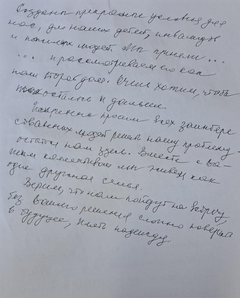 Credem că vom fi auziți și veți lua în seamă situația noastră și veți păstra acest centru E foarte greu de crezut că mai avem viitor, că mai avem speranțe".
