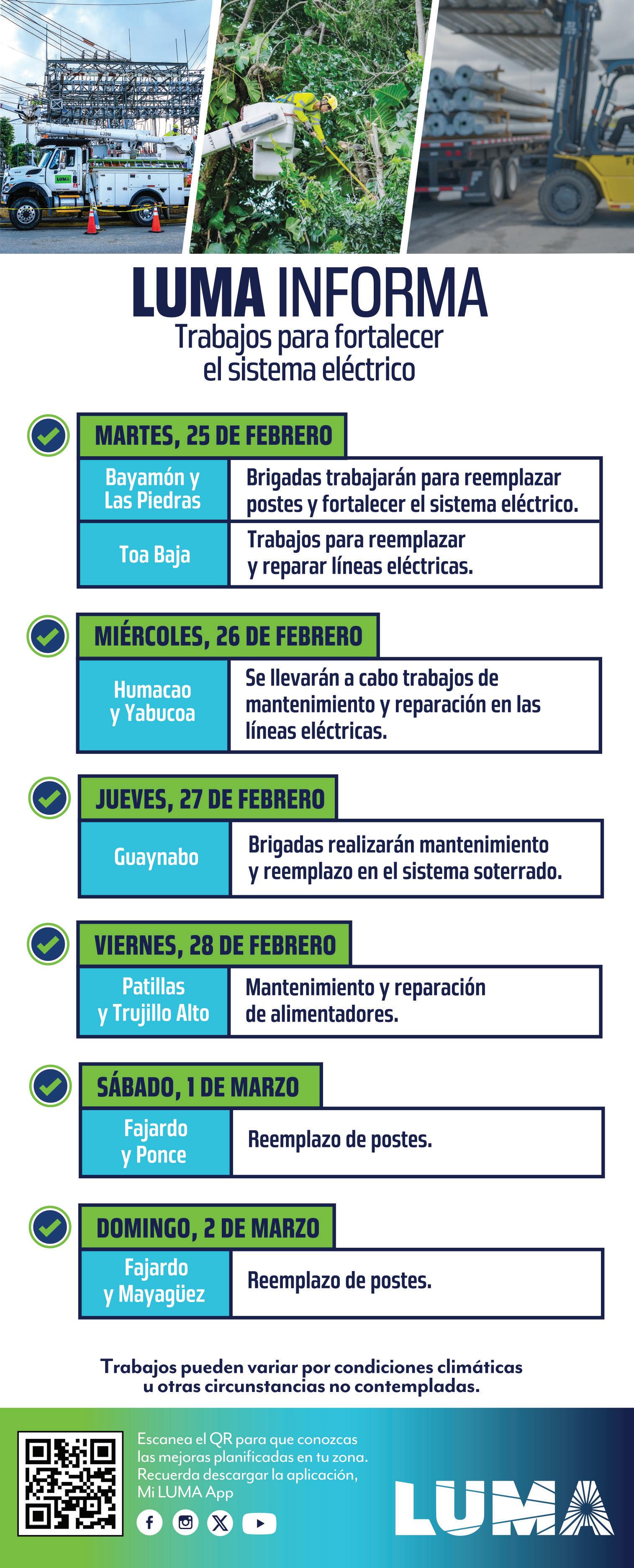 • el repago mensual de LUma energy de $30 millones por concepto defondos federales utilizados para cubrir costos e ineficiencias en proyectos de reconstrucción.