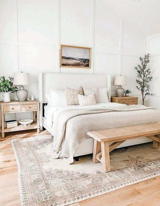 El uso de tabloncillos para crear efectos tridimensionales en las paredes vuelve a estar muy de moda…. es una decoración que invita al exterior a entrar en tu mundo interior, proporcionando un santuario de paz, que a la vez se sienta acogedor y cálido. Si quieres mantener una paleta neutral, como la que te mostramos, opta por blancos cremosos, telas texturizadas, objetos y muebles en ratttan o mimbre para acentuar ese balance y armonía con la naturaleza. Un minimalismo que nos muestra un ambiente despejado, donde reine el orden, la sencillez y la funcionalidad.