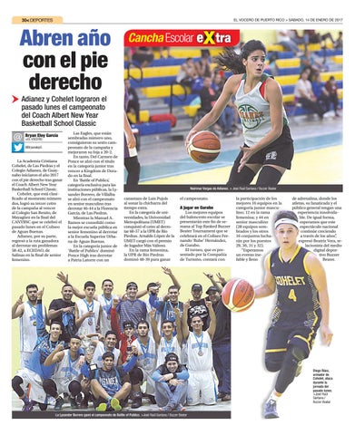 La Academia Cristiana Cohelet, de Las Piedras y el Colegio Adianez, de Guaynabo iniciaron el año 2017 con el pie derecho tras ganar el Coach Albert New Year Basketball School Classic. Cohelet, que está clasificado al momento número dos, logró su tercer cetro de la campaña al vencer al Colegio San Benito, de Mayagüez en la final del CANYBSC que se celebró el pasado lunes en el Coliseo de Aguas Buenas. Adianez, por su parte, regresó a la ruta ganadora al derrotar sin problemas 58-42, a ECEDAO, de Salinas en la final de senior femenino.