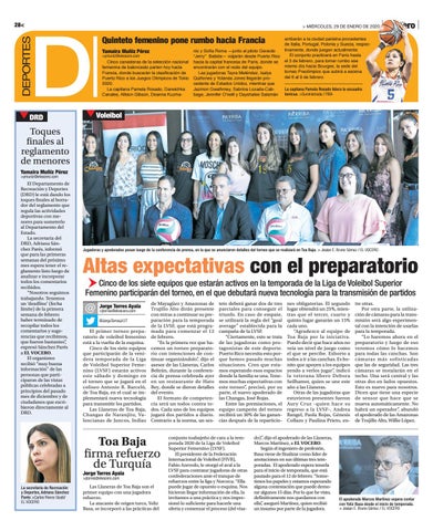 nes obligatorias. El segundo lugar obtendrá un 25%, mientras que el tercer, cuarto y quinto lugar ganarán un 15% cada uno. “Agradezco al equipo de Toa Baja por la iniciativa. Puedo decir que hace años no veía un nivel de juego como el que se percibe. Exhorto a todos a ir a las canchas. Es bonito que apoyen a los equipos yendo a verlos jugar”, indicó la veterana líbero Debora Seilhamer, quien se une este año a las Llaneras. Otras de las jugadoras que estuvieron presentes fueron Aury Cruz -quien hace su regreso a la LVSF-, Andrea Rangel, Paola Rojas, Génesis Collazo y Paulina Prieto, en-