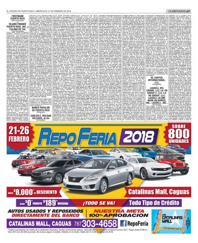 SAN LORENZO de gasolina, lavado y engrase escritura #75, otorgada en Lorenzo del día 10 de julio de este caso y demás instancias CIVIL NÚM.: D CD2015-2718 seis (6.00) metros de ancho y de vehículo de motor, venta de Caguas, Puerto Rico, el día 30 2012 y notificada el 17 de julio están disponibles para ser in- (402) SOBRE: Cobro de Dinero, por el OESTE en doce punto p i e z a s y a c c e s o r i o s p a r a de junio de 2005, ante el Not- de 2012. La suma antes descrita speccionadas en la secretaría INCUMPLIMIENTO DE CONsesenta y seis (12.66) metros vehículos de motor, consiste en ario Público Juan Rivera Torres, están garantizadas mediante: a. del Tribunal durante las horas TRATO, EJECUCIÓN DE HIPOcon la calle L de la Demandante un salón para oficina almacén y e n g a r a n t í a d e u n p a g a r é Pagaré hipotecario por la can- laborables. Se entenderá que to- TECAS POR LA VIA ORDINUrbanización. ---Enclava una V marquesina de concreto tiene suscrito bajo afidávit #26410, a tidad principal de $255,000 más d o l i c i t a d o r a c e p t a c o m o R A R I A Y E J E C U C I Ó N D E casa de concreto de una planta KV-3917 ESTADO LIBRE ASO- con techo de hormigón de dos pisos de terrazos y ventanas de favor del BANCO POPULAR DE intereses, costas y honorarios bastante la titularidad y que las G R A V A M E N M O B I L I A R I O CIADO DE PUERTO RICO RICO construcción mixta de madera, PUERTO RICO, O A SU OR- pactados, suscrito el 17 de oc- cargas y gravámenes anteriores E D I C T O D E S U B A S T A A : aguas, >que tiene tres (3) dormEL VOCERO DE PUERTO MIÉRCOLES, 21 DE FEBRERO DE 2018 TRIBUNAL DE PRIMERA INS- itorios, sala-comedor, cocina, concreto y zinc dedicada a DEN, por la suma principal de tubre de 1994 ante el Notario y los preferentes, si los hubiere, LAUSELL DEL CARIBE, LLC A: TANCIA SALA DE SAN JUAN baño y balcón. ---Finca número almacén de piezas y accesorios $345,000.00 y créditos adi- Público Juan Rivera Torres a l c r é d i t o d e l e j e c u t a n t e LA-RE GROUP 2, LLC A: LA-RE Demandados mil once (1,011) inscrita al folio CIVIL NUM. E2CI2011-0506 p a r a v e h í c u l o s d e m o t o r . cionales, devengará intereses al (Afidávit número 17,130), según continuarán subsiguientes. Se GROUP, LLC A: LAUSELL ALUciento seis (106) del tomo mil (201) Sobre: Incumplimiento de A d e m á s t i e n e o t r o a n e x o 6 enteros con 25 centésimas modificado por Escritura Número entenderá, que el rematante los MINIUM JALOURIES, INC. A: diecisiete (1017) de Sabana Contrato, Cobro de Dinero y pequeño de madera y zinc para anual y vence a la presentación, 72 de 30 de junio de 2005 ante acepta y queda subrogado en la LAUSELL, INC. A: RL CAPITAL Llana, Registro de la Propiedad Ejecución de Hipoteca A: CAR- guardar el equipo de la estación tasándose la finca en una can- el miso Notario, donde se re- responsabilidad de los mismos, INTERNATIONAL LLC AL PUBParte Demandante de Puerto Rico, Sección Quinta LOS E. ROLDAN DELGADO, su de servicio. La segunda planta tidad equivalente al principal ori- onoció la subsistencia del men- sin destinarse a su extinción el LICO EN GENERAL: El Alguacil vs. de San Juan.   POR LA esposa FULANA DE TAL y la es toda de concreto dedicada a ginal del pagaré, e inscrita al fo- cionado pagaré hipotecario para precio del remate. Se notifica a que suscribe por la presente PRESENTE se le emplaza para SOCIEDAD LEGAL DE GANAN- r e s i d e n c i a c o n s i s t e d e u n lio 26 del tomo 394 de San interrumpir toda prescripción lib- T&B Petroleum, Corp., como anuncia y hace constar que en que presente al tribunal su CIALES compuesta por ambos; balcón, terraza, cuatro dormitori- Lorenzo; inscripción 33. -AR- eratoria. B. Pagaré hipotecario acreedor preferente, para que cumplimiento de una Sentencia alegación responsiva a la de- JESUS M. ROLDAN RODRIG- os, dos baños, sala, comedor, RENDAMIENTO a favor de The por la cantidad principal de pueda concurrir a la subasta si dictada en el caso de epígrafe el manda dentro de los treinta días UEZ, su esposa MARIA DEL- cocina, tiene piso de terrazo y Shell Company (Puerto Rico) $400,000.00 más intereses, cos- les conviene o para satisfacer día 19 de agosto de 2016, prosiguientes a la publicación de GADO RIVERA y la Sociedad ventanas de aluminio. Enclava Limited, por un término de 10 tas y honorarios pactados, antes del remate el importe del ederá a vender el día 12 de marParte Demandada CIVIL NUM. SJ2017CV02074 e s t e e d i c t o . U s t e d d e b e r á Legal de Gananciales com- c a s a d e c o n c r e t o d e d o s años, canon: $5,000.00 mensu- suscrito el 14 de julio de 1999 crédito, de sus intereses, costas zo de 2018, en mi oficina localizSOBRE: CANCELACION DE presentar su alegación respons- puesta por ambos AVISO DE plantas. Dicho inmueble aparece al, mediante la escritura #7, otor- ante el Notario Público Juan y honorarios de abogados ase- ada en el Tribunal de Primera InP A G A R E E X T R A V I A D O iva a través del Sistema Unific- VENTA EN PÚBLICA SUBASTA inscrito al folio doscientos gada en San Juan, Puerto Rico, Rivera Torres (Afidávit Número gurados, quedando entonces stancia, Sala de San Juan, al EDICTO DE EMPLAZAMIENTO ado de Manejo y Administración Yo, IVONNE BENITEZ LOPEZ, noventa y nueve (299) del tomo el día 13 de octubre de 2004, 21,146), según modificado por subrogados en los derechos del mejor postor y por dinero en ESTADOS UNIDOS DE AMER- de Casos (SUMAC), al cual Alguacil del Tribunal de Primera doscientos treinta y siete (237) ante el Notario Público Paul Escritura Número 73 de 30 de a c r e e d o r e j e c u t a n t e . L a efectivo, cheque de gerente, o ICA EL PRESIDENTE DE LOS puede acceder utilizando la Instancia de Puerto Rico, Sala de San Lorenzo, Sección Se- Rene Cortes Rexach, e inscrito junio de 2005 ante el mismo propiedad a ser ejecutada se ad- l e t r a b a n c a r i a c o n s i m i l a r EE. UU.) EL ESTADO LIBRE siguiente di