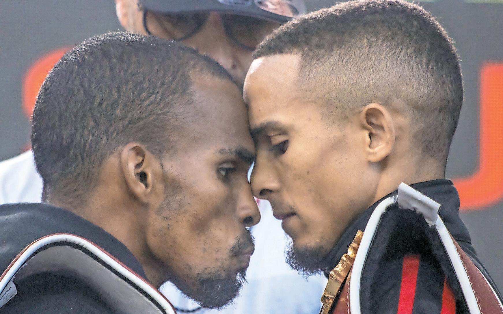 Los boricuas Jonathan “Bomba” González (a la izquierda) y René Santiago protagonizaron un tenso cara a cara previo a su pelea por el campeonato mundial.