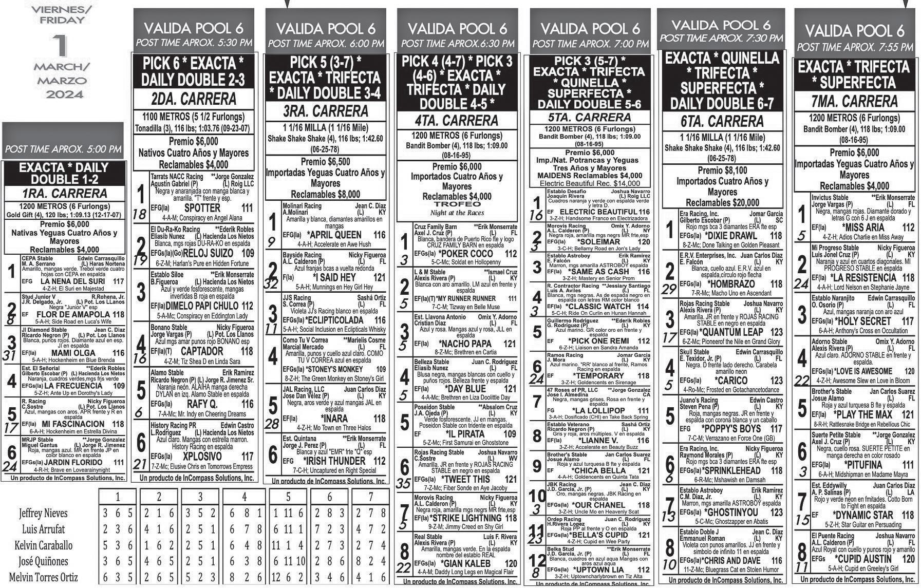 Confiamos en él y lo recomendamos solo en nuestra jugada de Pool de seis, que inicia en la segunda carrera con Spotter, al que le conviene mucho el cómodo peso y Xplosivo, que cuadra