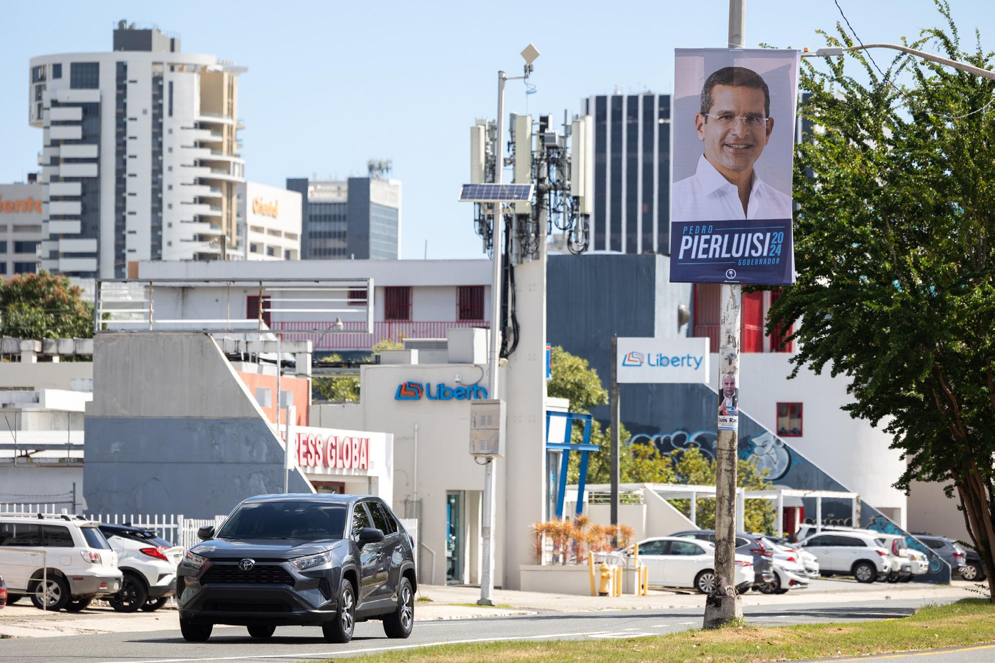 que considera su lanzamiento para la gobernación mientras aparecen afiches de Pierluisi