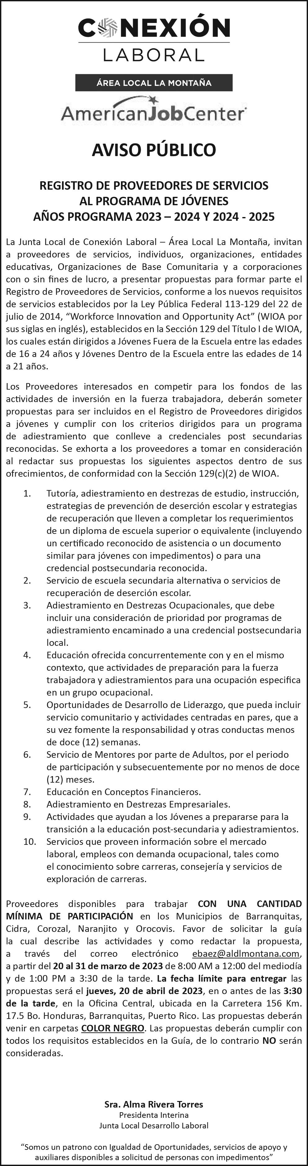 >17 >Vehículos >Bienes Raíces >Misceláneas >Empleos >Clases >Servicios >Avisos >Esquelas Metro: 787-724-1485 / Fax: 787-725-7484 / EMAIL: clasificados@elvocero.com *El Vocero de Puerto Rico no se responsabiliza por el contenido de anuncios pautados en esta sección > LUNES, 20 DE MARZO DE 2023 clasificados