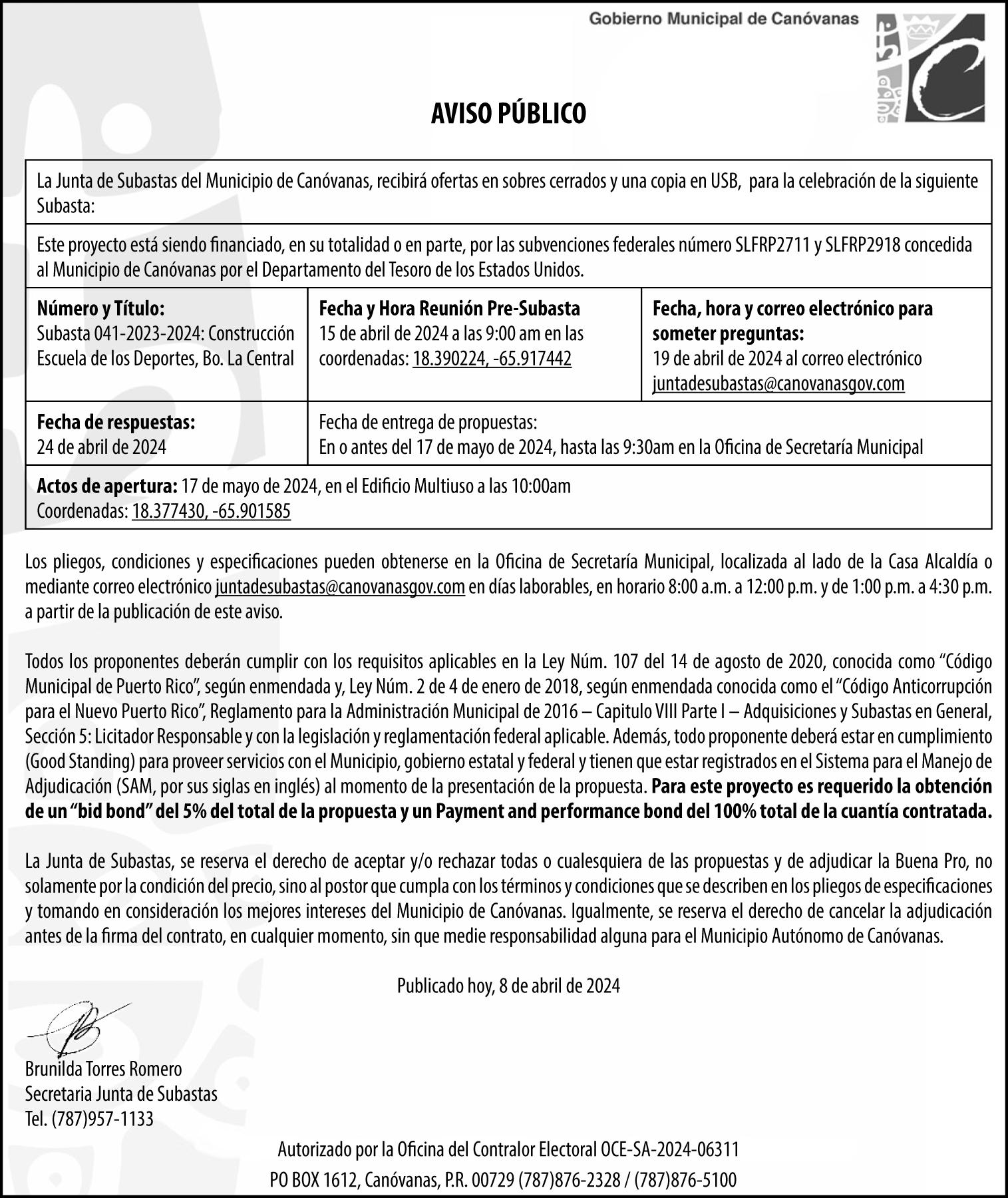 C o p i a d e e s t a n o t i f i c a c ó n h a s i d o a r c h i v a d a e n l o s a u t o s d e e s t e c a s o , c o n f e c h a d e 0 3 d e ABRIL de 2024 En SAN JUAN , Puerto Rico e 03 de ABRIL de 2 0 2 4 G R I S E L D A R O D R I G U E Z C O L L A D O f / E L S I E P R A T T S MELENDEZ Nombre del (de la) S e c r e t a r i o ( a ) N o m b r e y F r m a de (de a) Secretario(a) Auxi ar d e l T r i b u n a l O A T 6 8 6 N o t i f i c a c i ó n d e S e n t e n c a p o r E d i c t o ( R e v a g o s t o 2 0 1 1 ) w w w p o d e r j u d i c i a p r