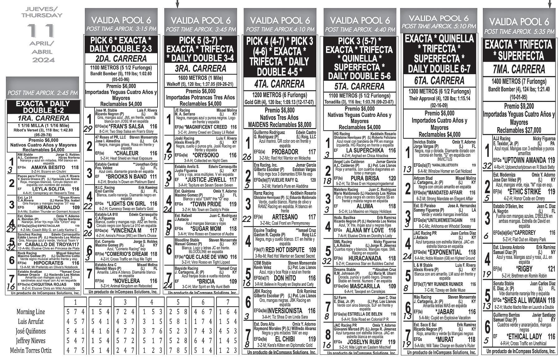 Mientras, la superfecta la cerramos con Shes All Woman que viene de terminar segunda a menos de dos cuerpos de Rigby. Es capaz de cerrar desde cerca del paso, por lo que la monta de Juan Carlos Díaz para esta ocasión debe ayudarle.