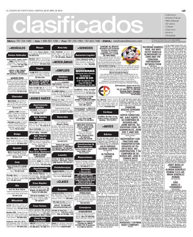 Metro: 787-724-1485 / Isla: 1-888-567-1390 / Fax: 787-725-7484 / 787-622-7496 / EMAIL: clasificados@elvocero.com ASSET COMPANY,